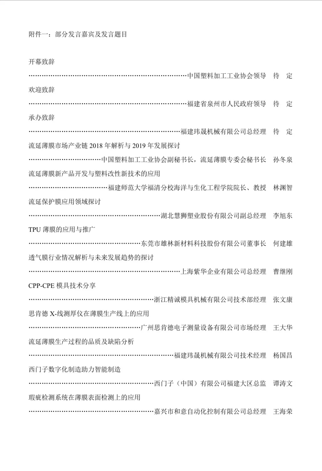 關(guān)于召開2019 第五屆特種流延薄膜技術(shù)交流與現(xiàn)場演示會(huì)的通知